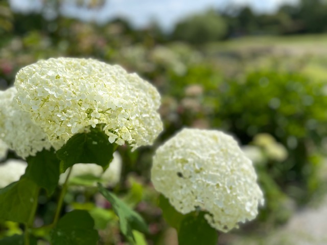 里のあじさい通り・あじさい山にはアナベル(白い紫陽花)など色とりどりの花が満開です。