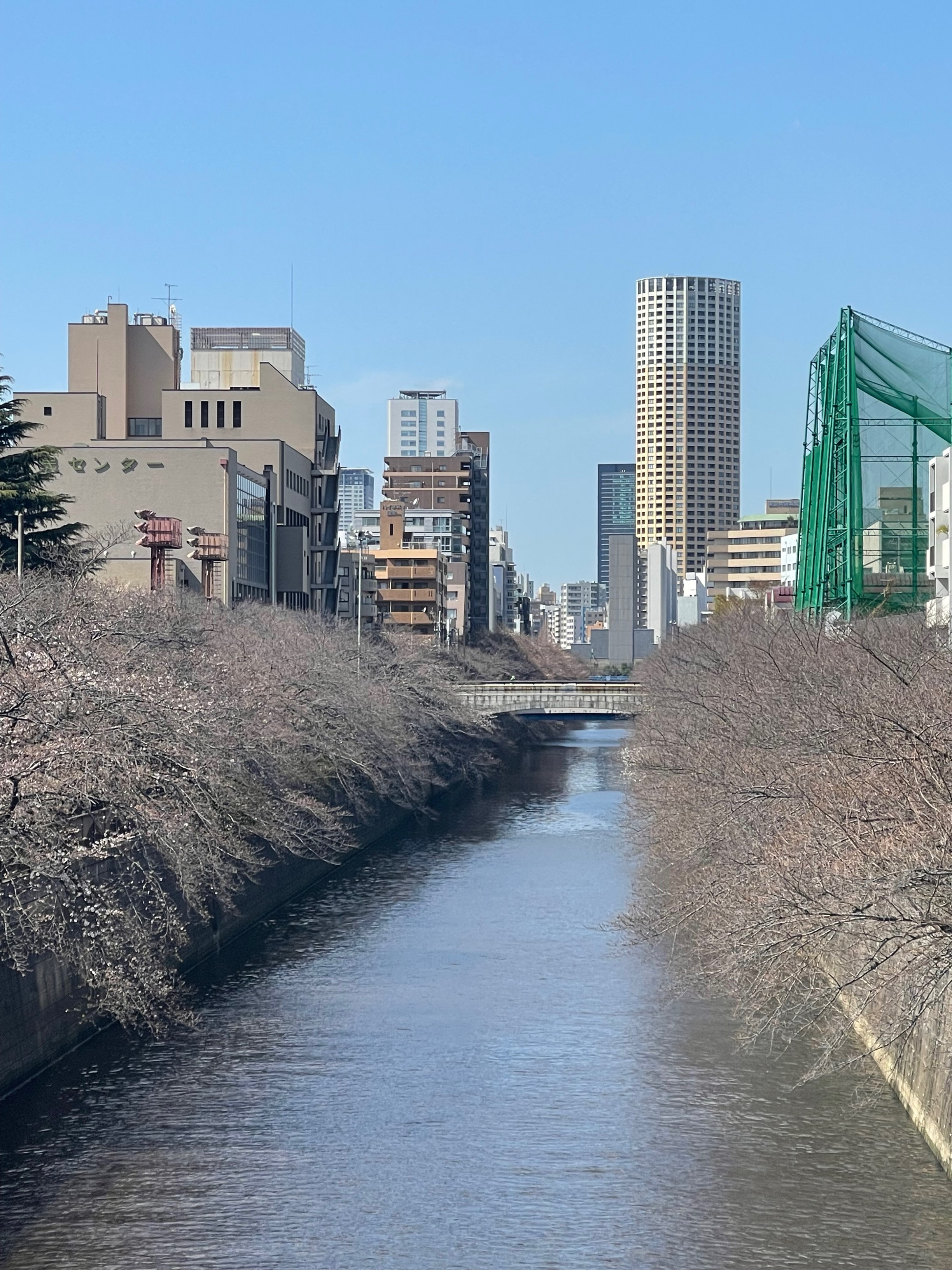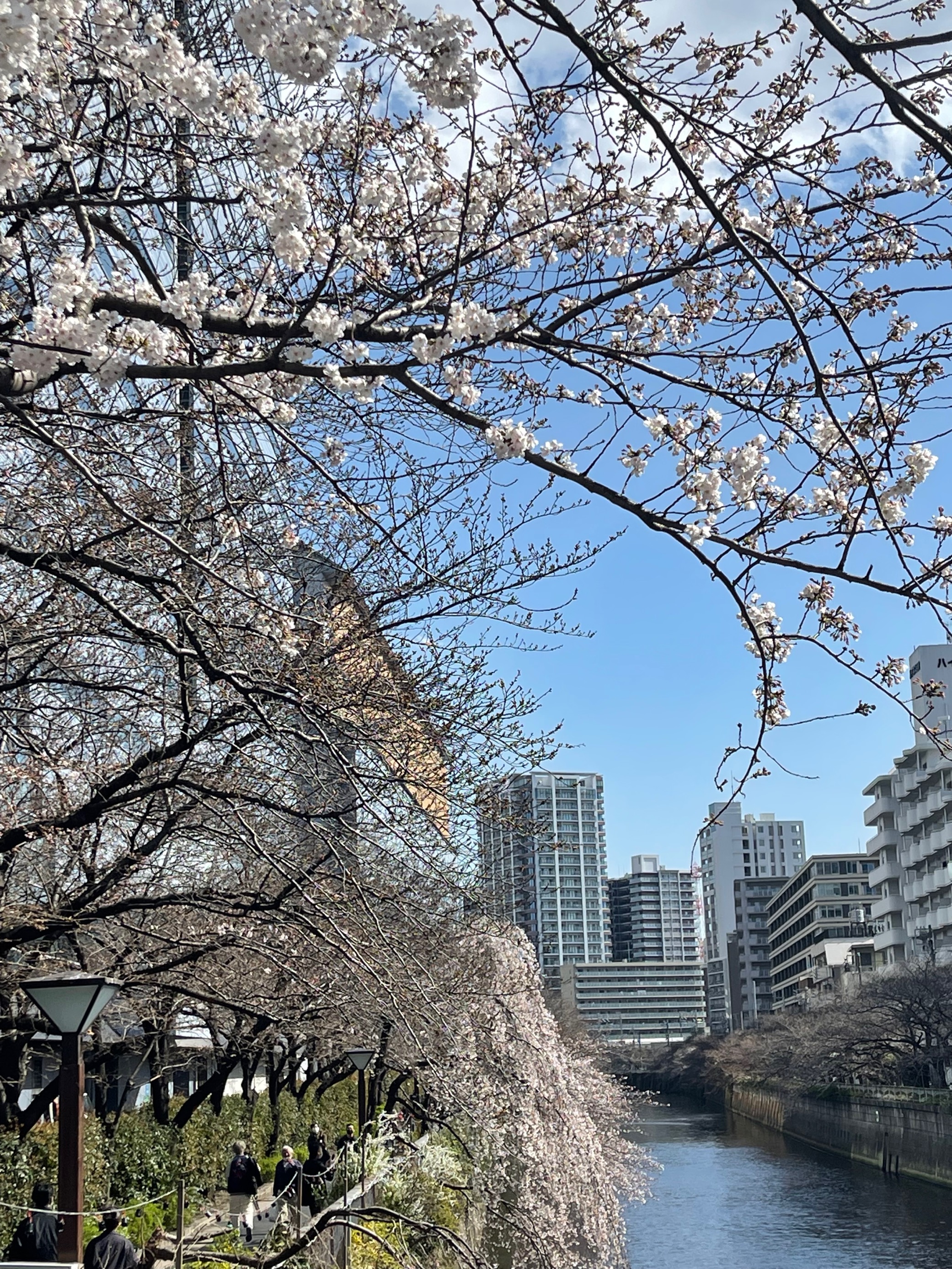 目黒川の桜が満開になるのは、もう少し先のようです。